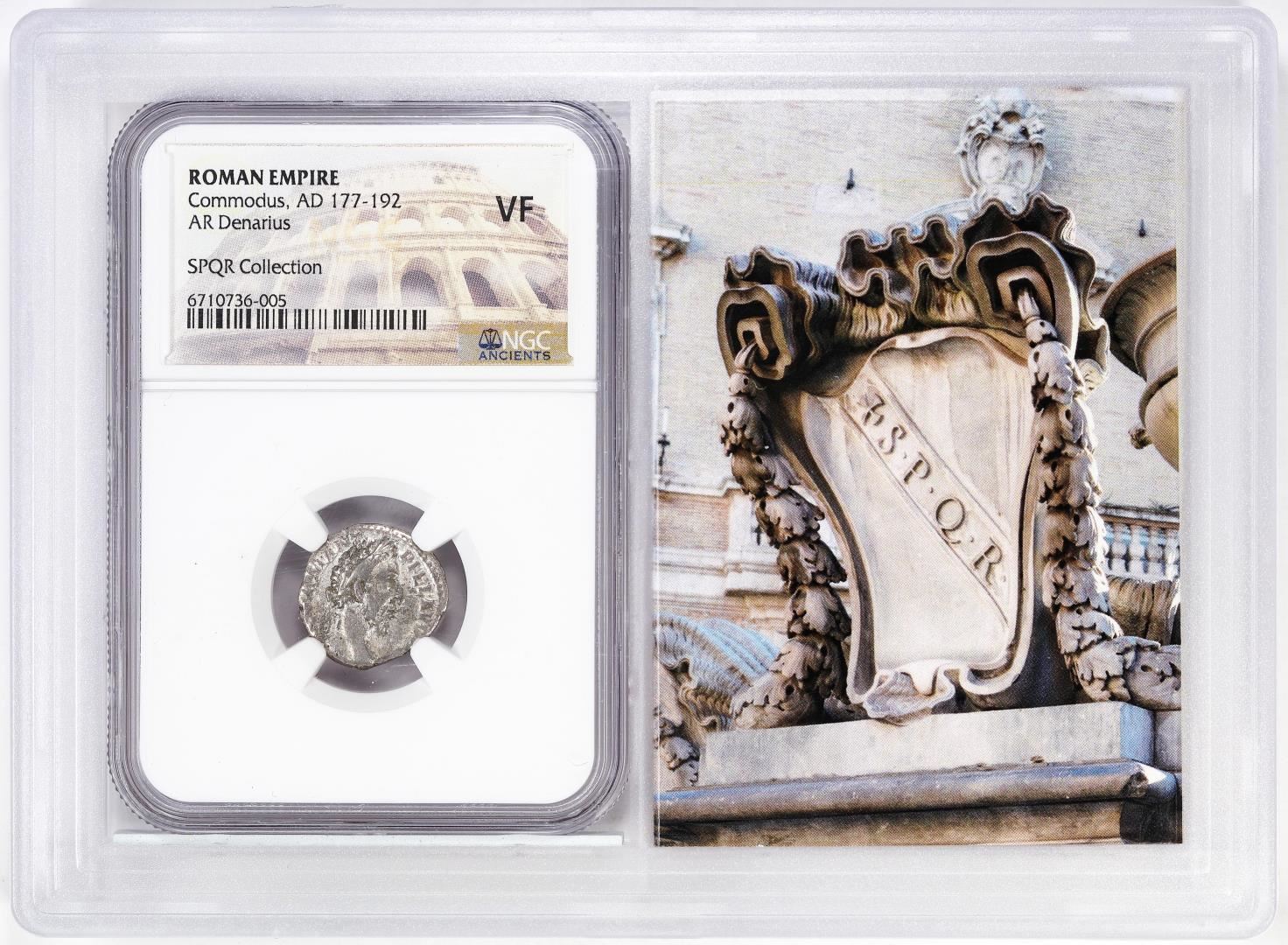 Roman Empire 177-192 AD Commodus AR Denarius Ancient Coin NGC VF Story Box