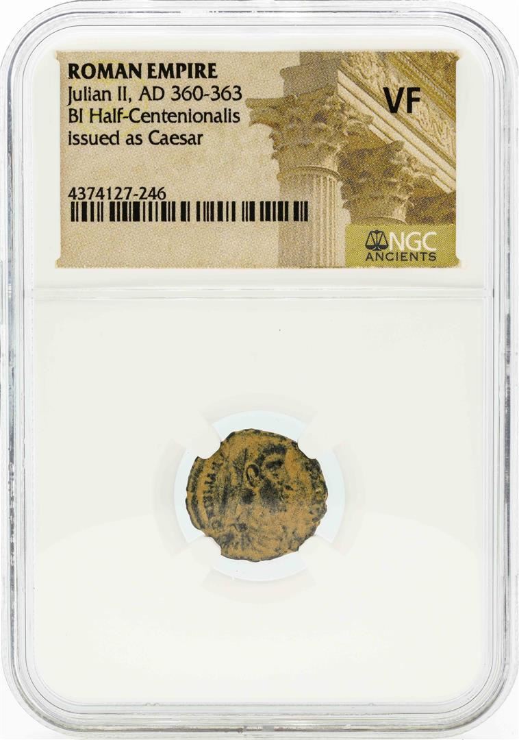One Roman Empire AD 360-363 Julian II BI Half Centenionalis Coin NGC VF. NGC Certified.