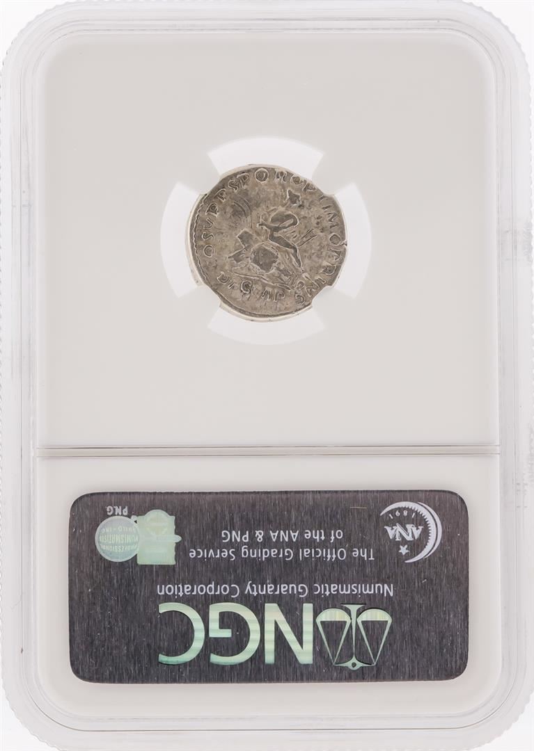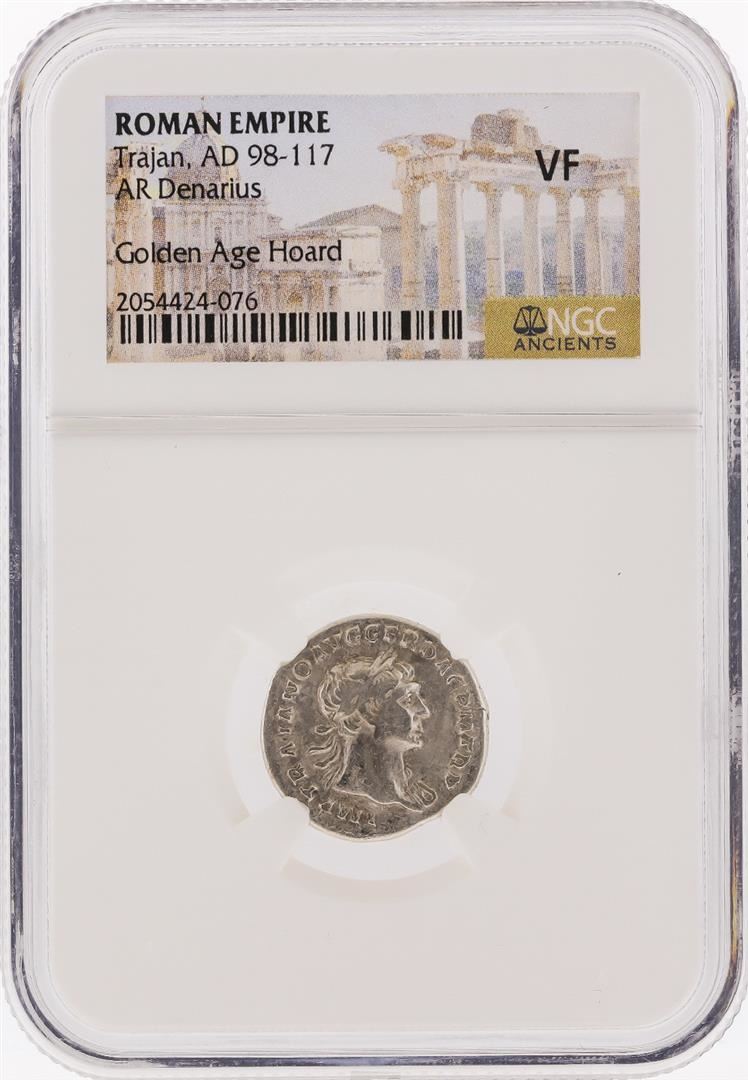 One Roman Empire AD 98-117 Trajan AR Denarius Coin NGC VF. NGC Certified.