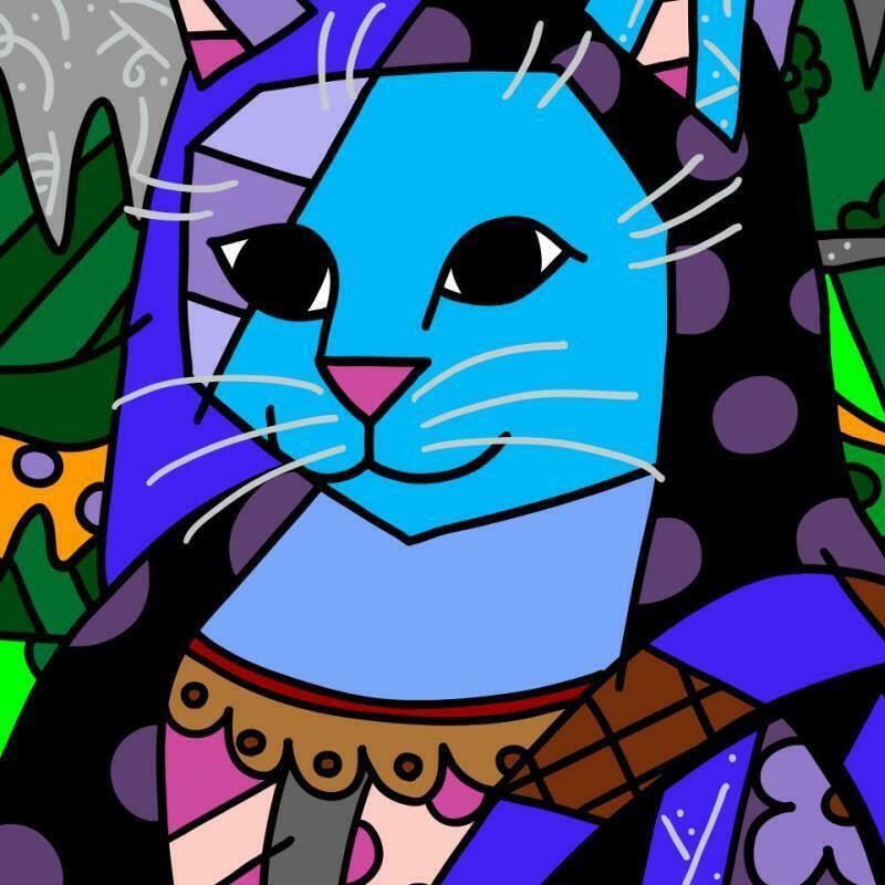 "New Mona Cat" is an open edition giclee on canvas by Romero Britto. The piece comes hand signed by the artist and is authenticated en verso with the official Britto stamp. Measures approximately: 15" x 11".