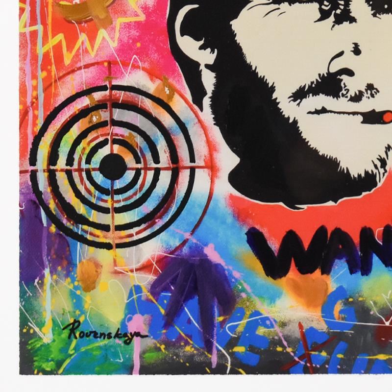 "Wanted" is a one-of-a-kind mixed media on deckle edge paper by Nastya Rovenskaya, Hand signed by the artist. This piece comes floating in a custom frame. Includes Letter of Authenticity. Measures approx. 31.5" x 27.5" (framed), 24" x 20" (image).