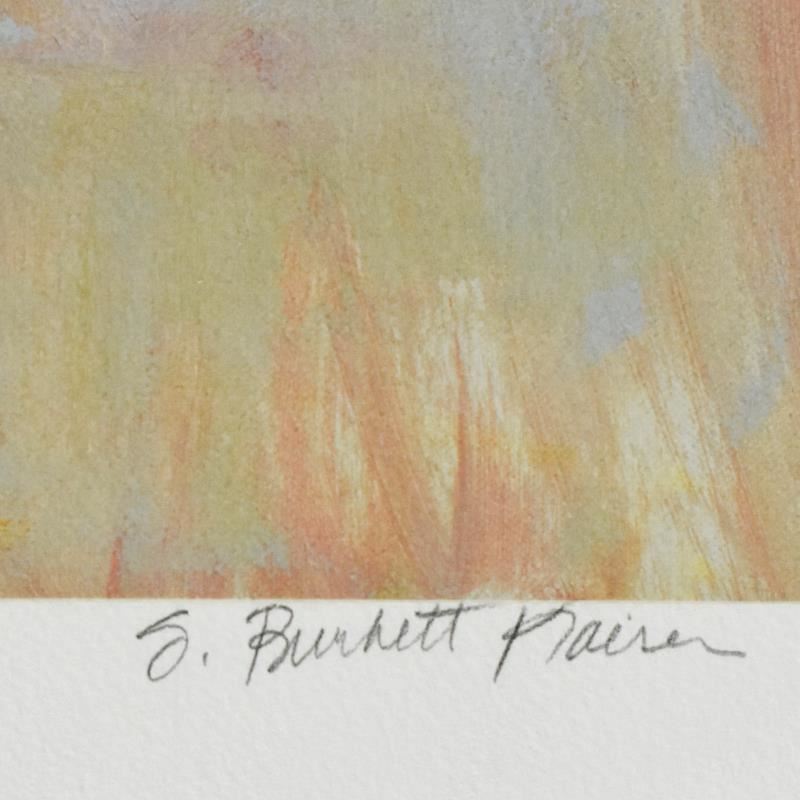 "Tulips & Peaches" is a limited edition giclee on paper by S. Burkett Kaiser, numbered and hand signed by the artist. Includes Letter of Authenticity. Measures approx. 38" x 30.5" (border), 33" x 25" (image).