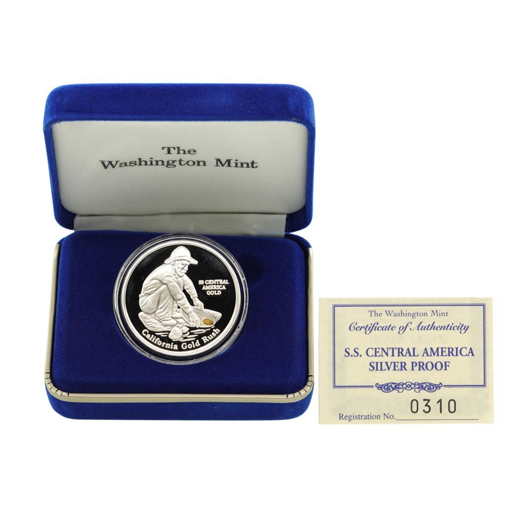 SS Central America .999 Fine Silver Proof Metal w/ Gold Nugget w/Box & COA