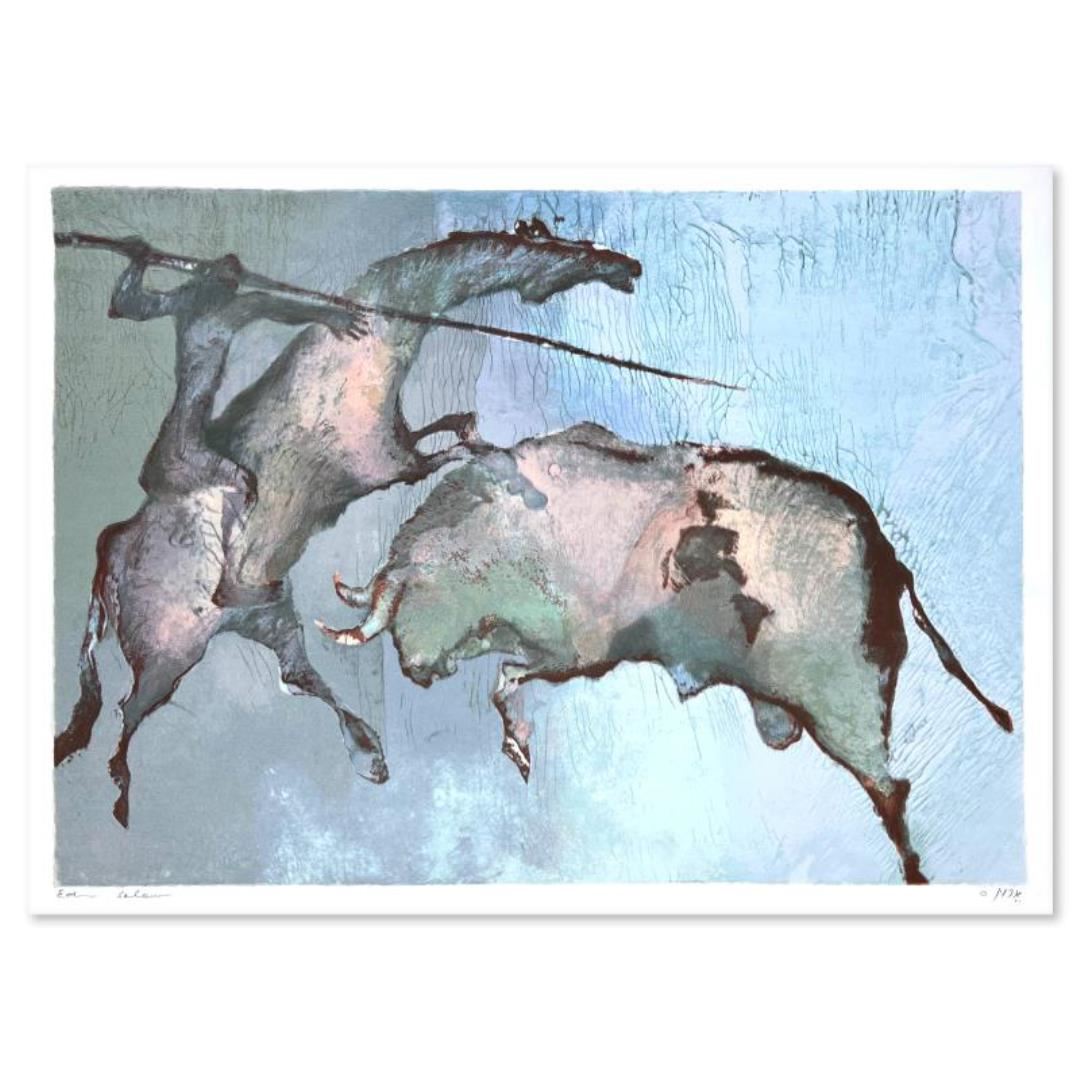 This is a limited edition serigraph on paper by Edwin Salomon (1935-2014). The piece comes hand signed by the artist, numbered, and with a letter of authenticity. Measures approximately 18.5" x 27".
