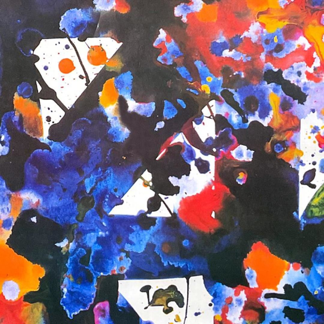 "Paintings and Drawings" is a vintage offset lithograph by Sam Francis (1923-1994) cropped from the Ace Gallery 1979 poster. This piece comes custom framed and includes Letter of Authenticity. Measures approx. 35" x 42.5" (frame), 28" x 36" (image). Due to the age of this piece there may be some very minor waviness on the paper, but it is in overall excellent condition.