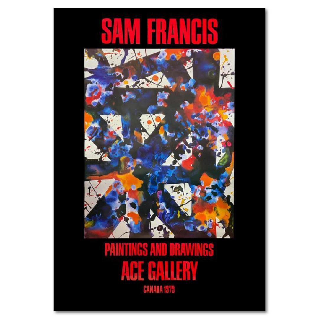 "Paintings and Drawings" by Sam Francis (1923-1994) is a vintage poster (1979) from Ace Gallery. Includes Letter of Authenticity. Measures approx. 40.5" x 58" (image). Condition: Good. There may be some small whitish discoloration marks and some dings, ripples, or dimples. Wear at edges. Due to the age of the piece and the nature of the material, this piece is in relatively good condition.