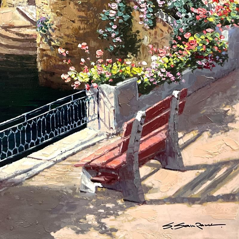 "Lakeside at Bellagio" is a hand embellished limited edition publisher's proof on stretched canvas by Sam Park, numbered and hand signed by the artist. Includes Letter of Authenticity. Measures approx. 30" x 24" (image). There is minor wear on the corners and edges; especially the left edge (chipping and/or hairline cracks) that may be concealed when framed.