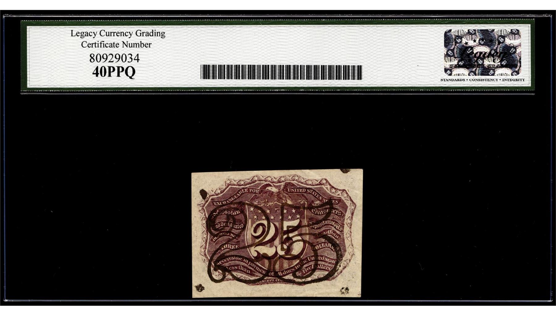 One Second Issue 25 Cents Fractional Currency Note Fr.1286 Legacy Extremely Fine 40PPQ. Legacy Graded.