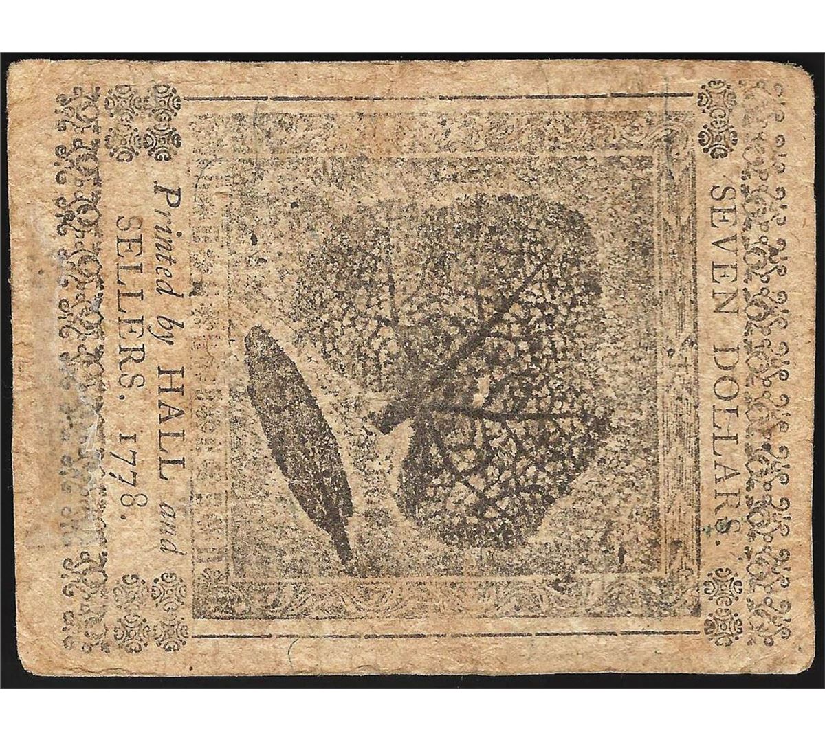 September 26, 1778 $7 Spanish Milled Continental Currency Note