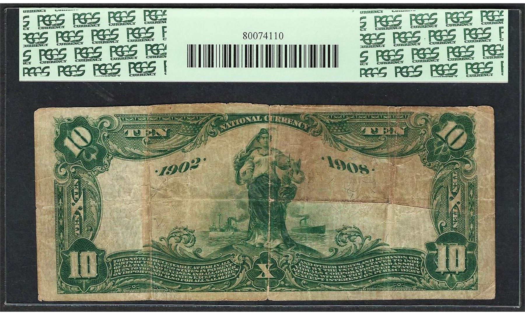 One Serial # 1 1902 DB $10 Washington, PA CH# 9901 National Currency Note PCGS Very Good 10. PCGS Graded.