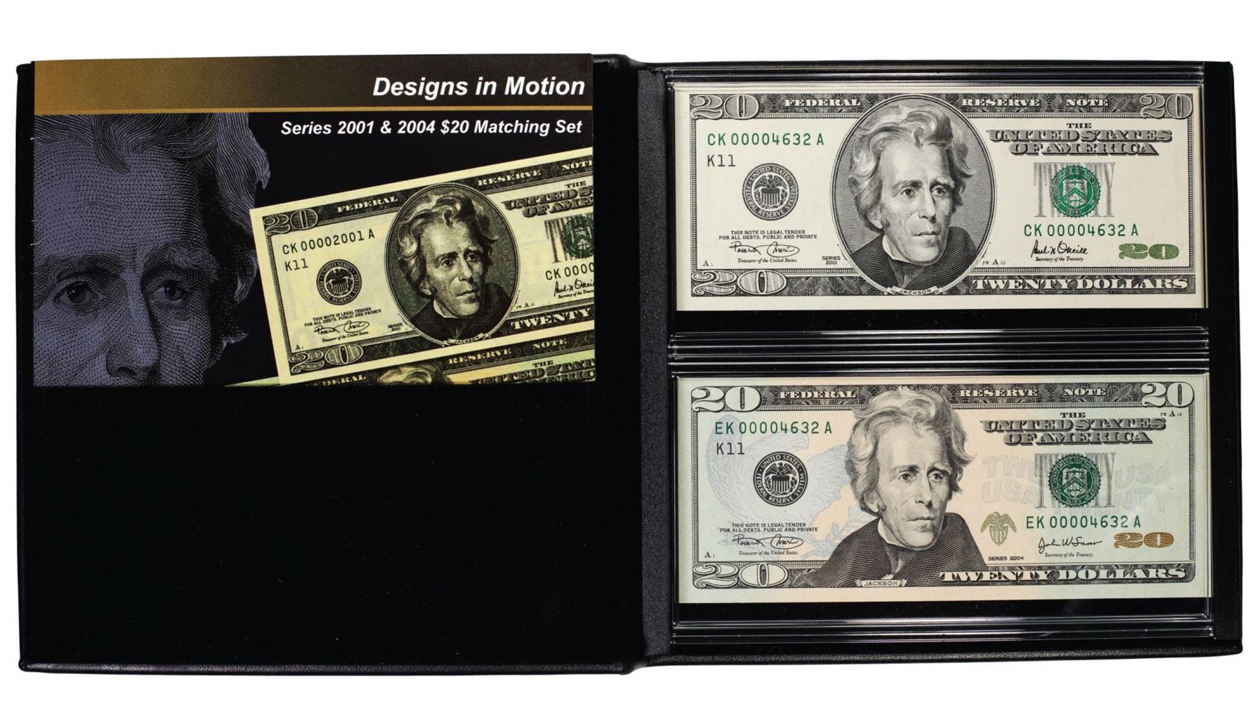 Series 2001/2004 $20 Federal Reserve Notes Designs in Motion Set Matching Serial #'s