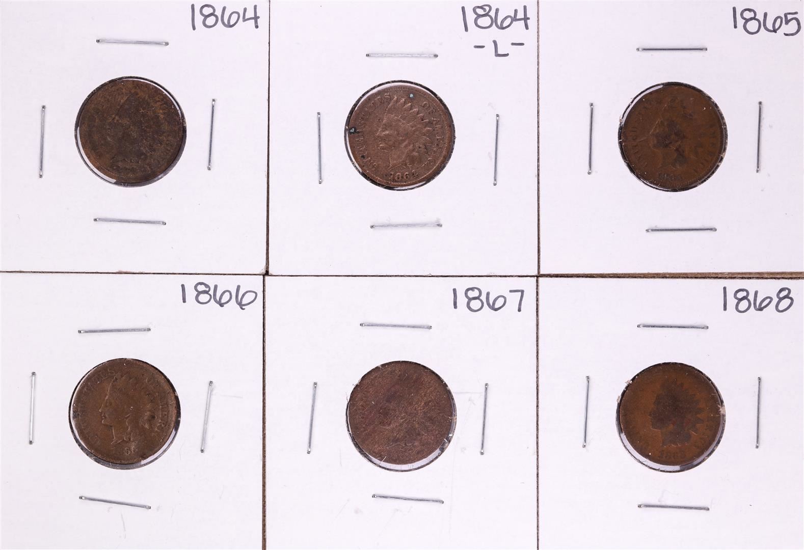 One Set of 1864 -1868 Indian Head Cent Coins Including 1864-L.