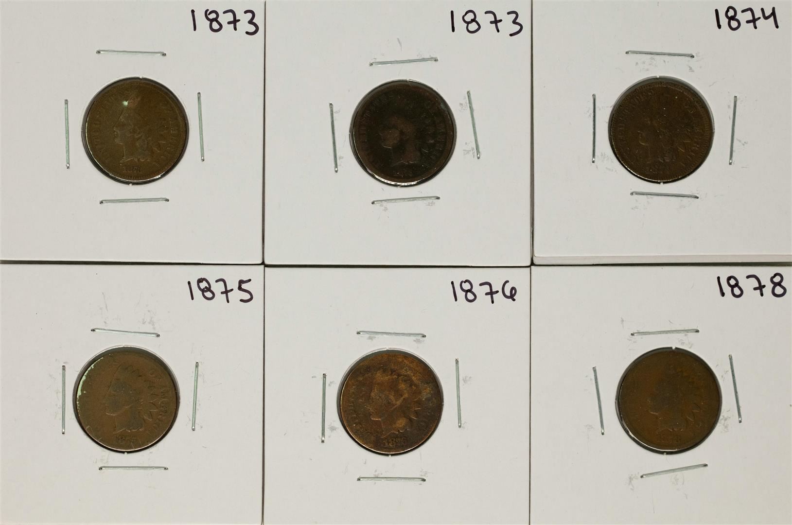 One Set of 1873-1878 (No 1877) Indian Head Cent Coins.