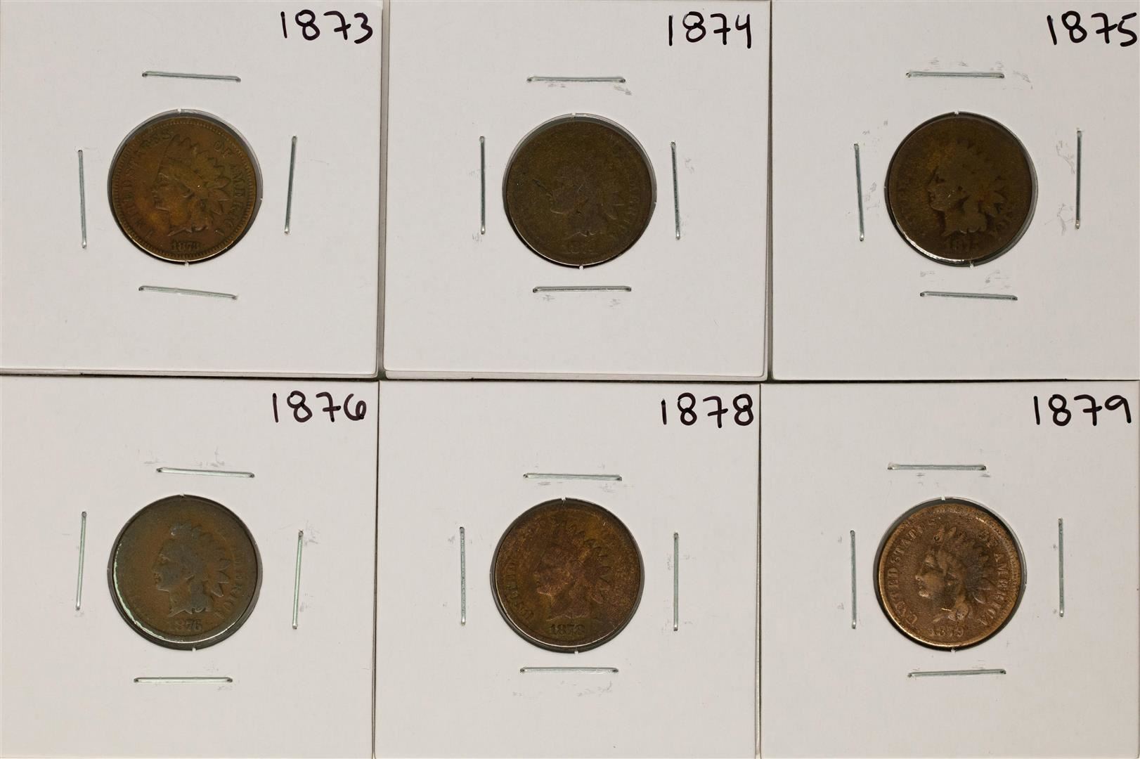 One Set of 1873-1879 (No 1877) Indian Head Cent Coins.