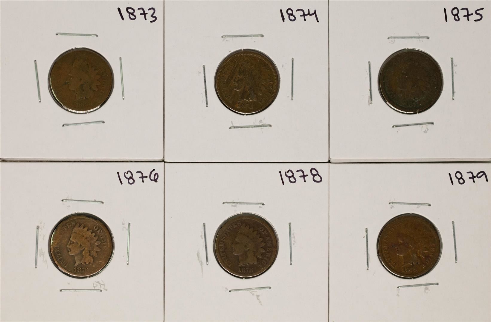One Set of 1873-1879 (No 1877) Indian Head Cent Coins.