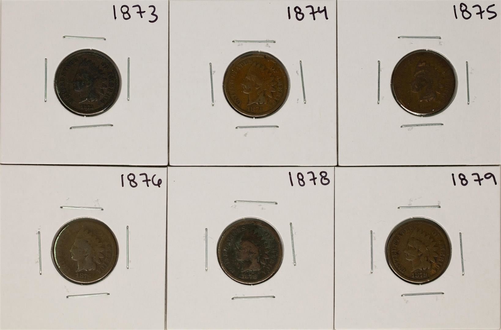 One Set of 1873-1879 (No 1877) Indian Head Cent Coins.