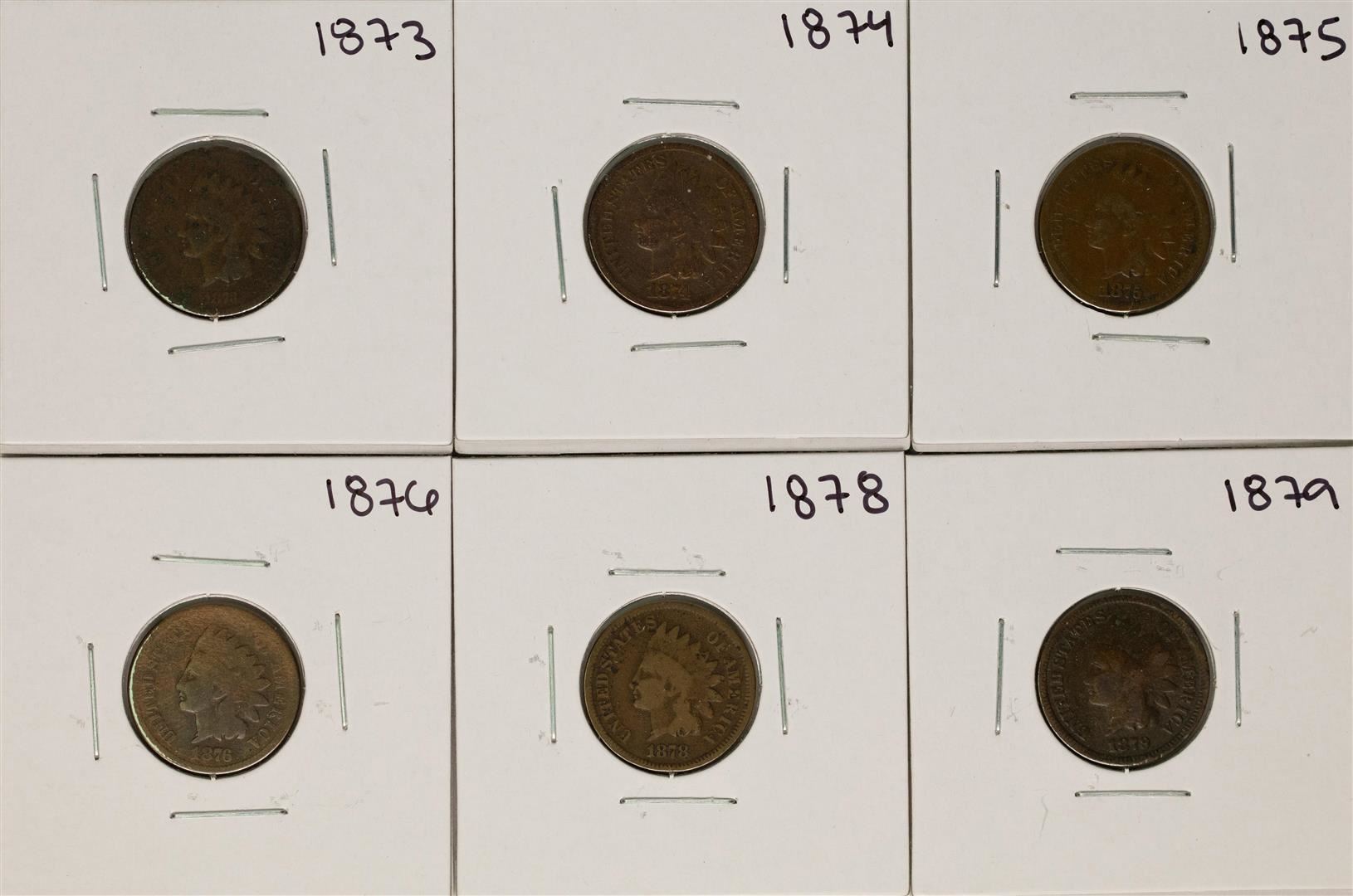 One Set of 1873-1879 (No 1877) Indian Head Cent Coins.
