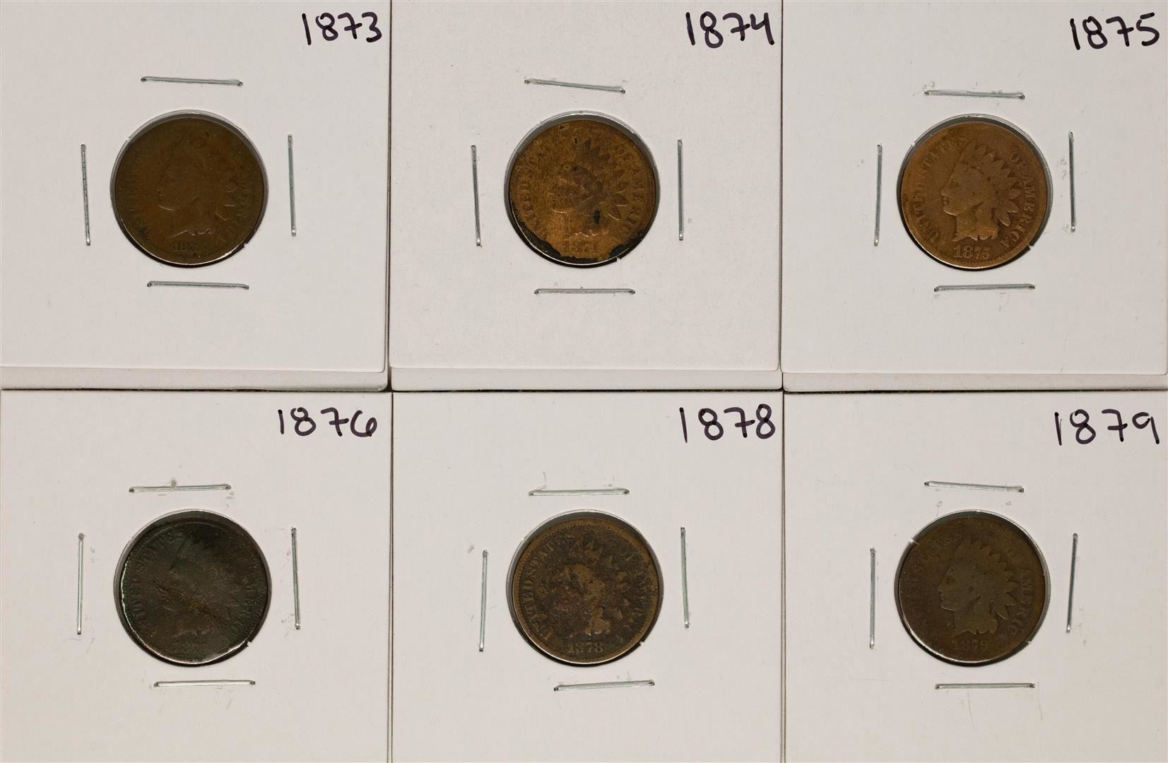 One Set of 1873-1879 (No 1877) Indian Head Cent Coins.