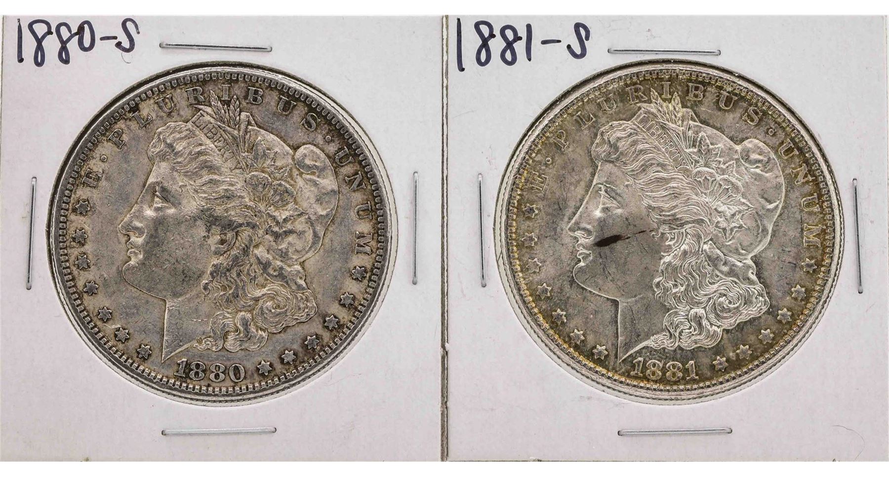 One Set of 1880-S to 1881-S $1 Morgan Silver Dollar Coins.