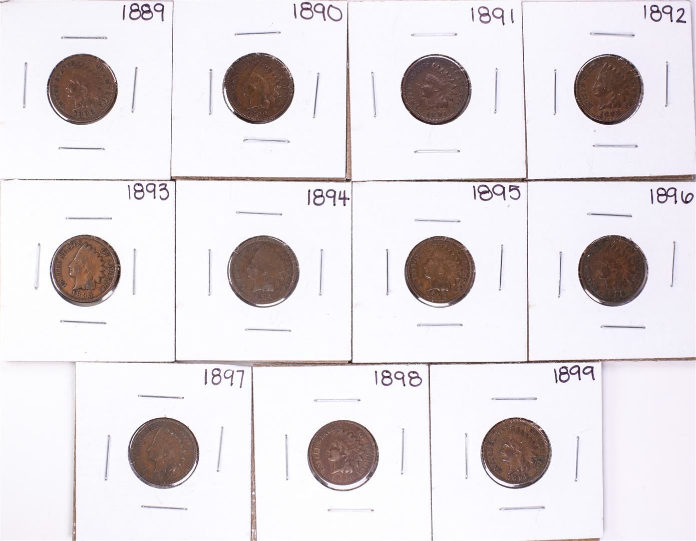 One Set of 1889-1899 Indian Head Cent Coins.
