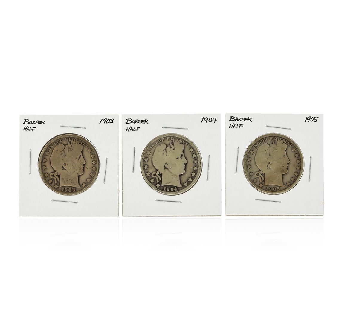 One Set of 1903-1905 Silver Barber Half Dollar Coins.