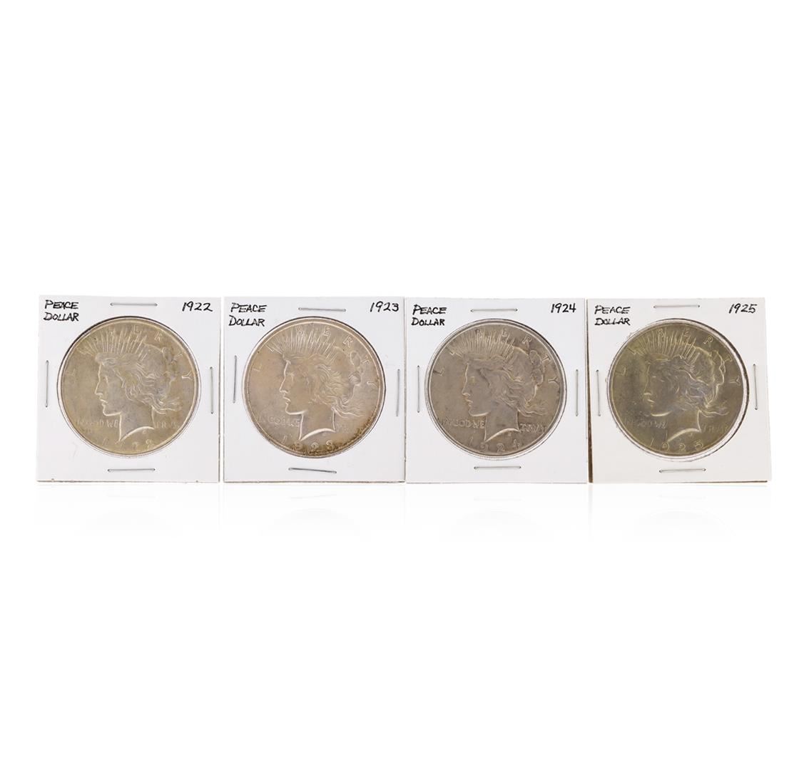 One Set of 1922-1925 $1 Peace Silver Dollar Coins.