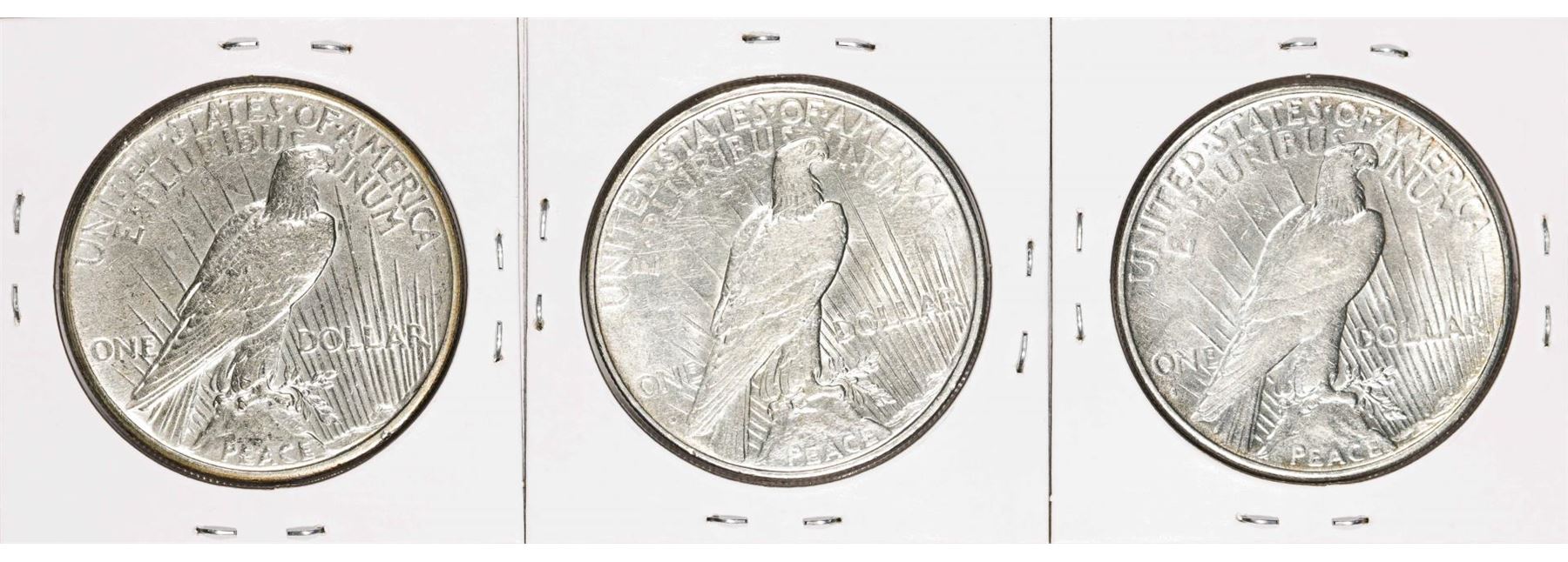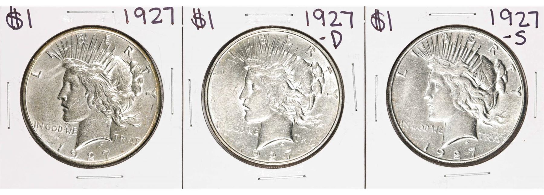 One Set of 1927-P/D/S $1 Peace Silver Dollar Coins.