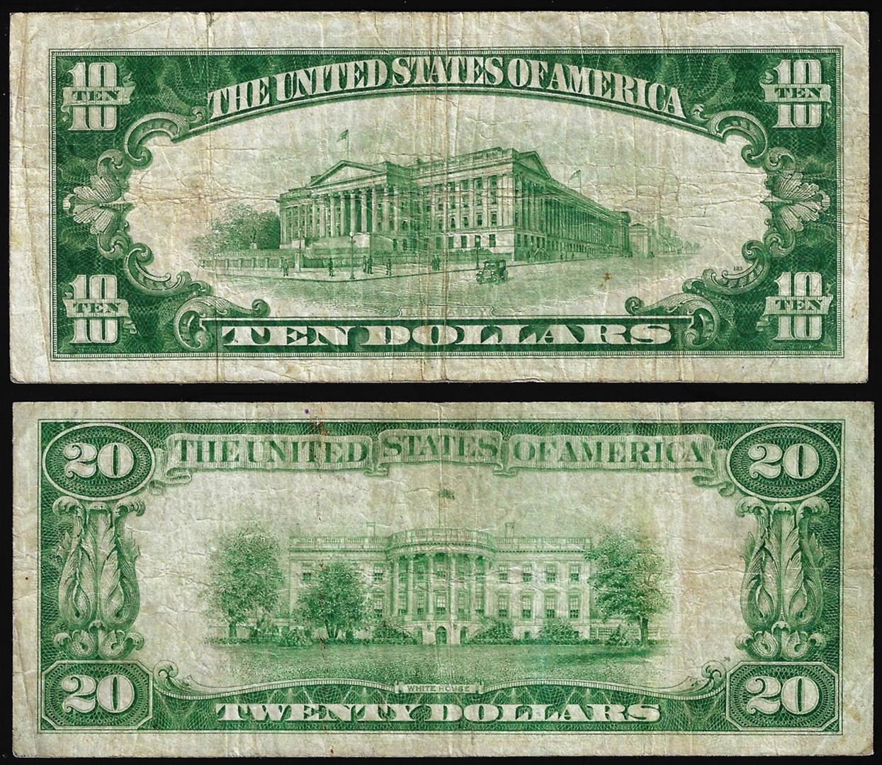 One Set of 1929 $10/$20 First NB of Seattle, WA CH# 11280 National Currency Notes.