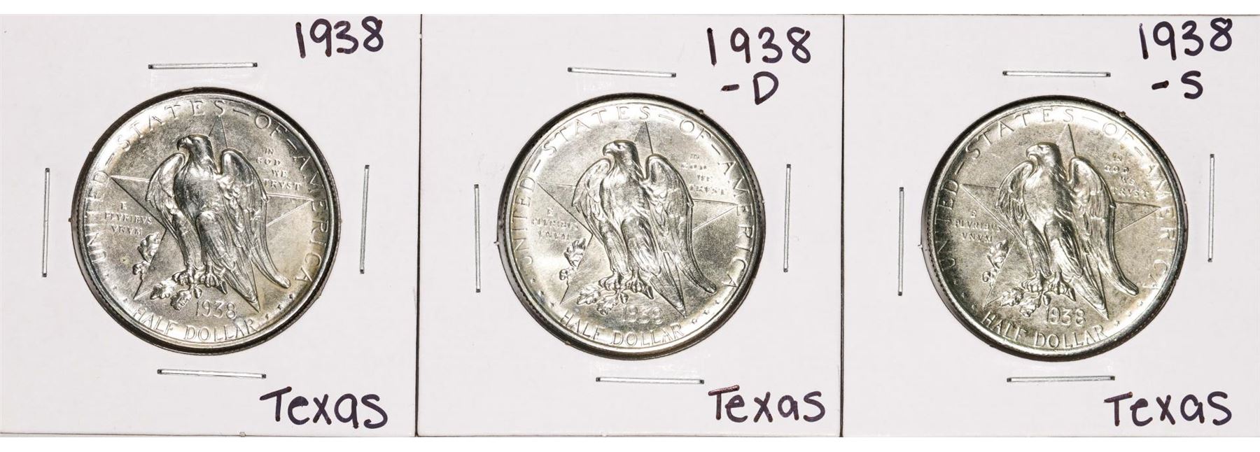 Set of 1938 P/D/S Texas Independence Centennial Commemorative Half Dollar Coins