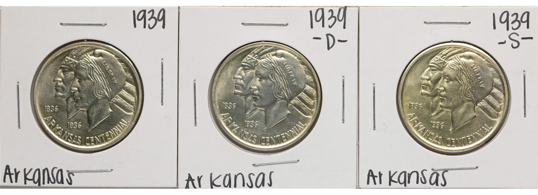 Set of 1939-P/D/S Arkansas Centennial Commemorative Half Dollar Coin