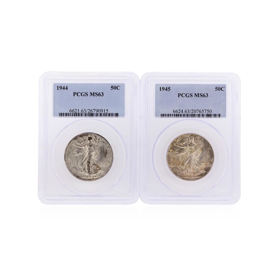 One Set of 1944-45 Walking Liberty Half Dollar Coins PCGS Graded MS63. PCGS Graded.