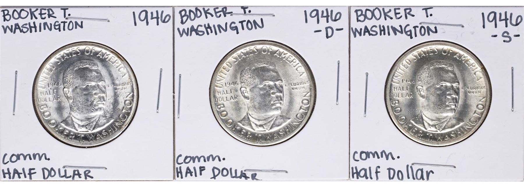 Set of 1946 P/D/S Booker T. Washington Commemorative Half Dollar Coins