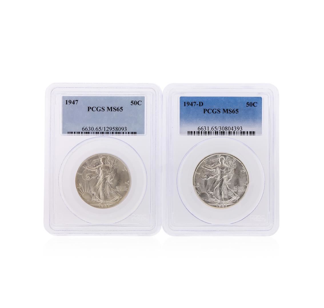 One Set of 1947 & 1947-D Walking Liberty Half Dollar Coins PCGS Graded MS65. PCGS Graded.