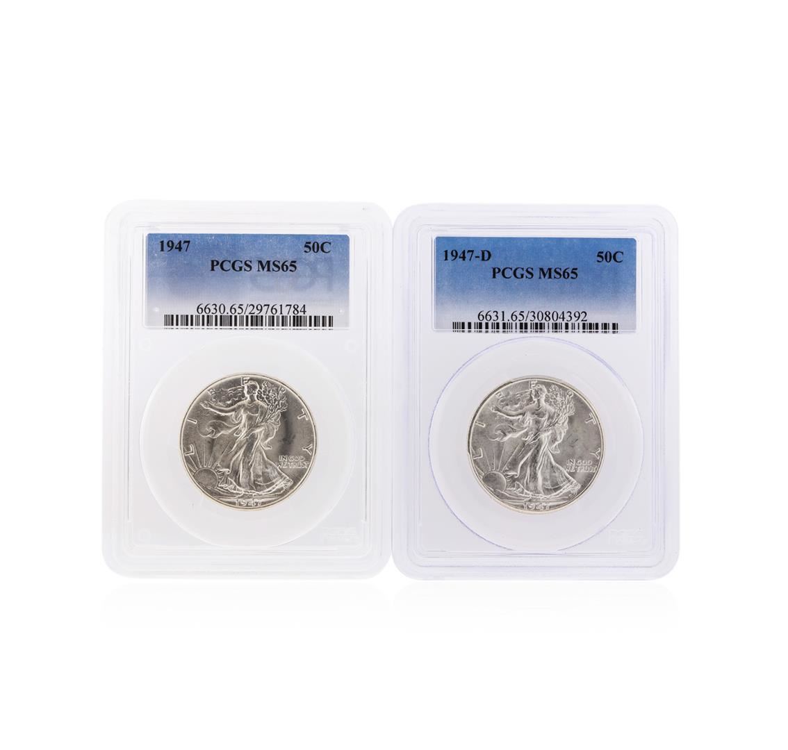 One Set of 1947 & 1947-D Walking Liberty Half Dollar Coins PCGS Graded MS65. PCGS Graded.