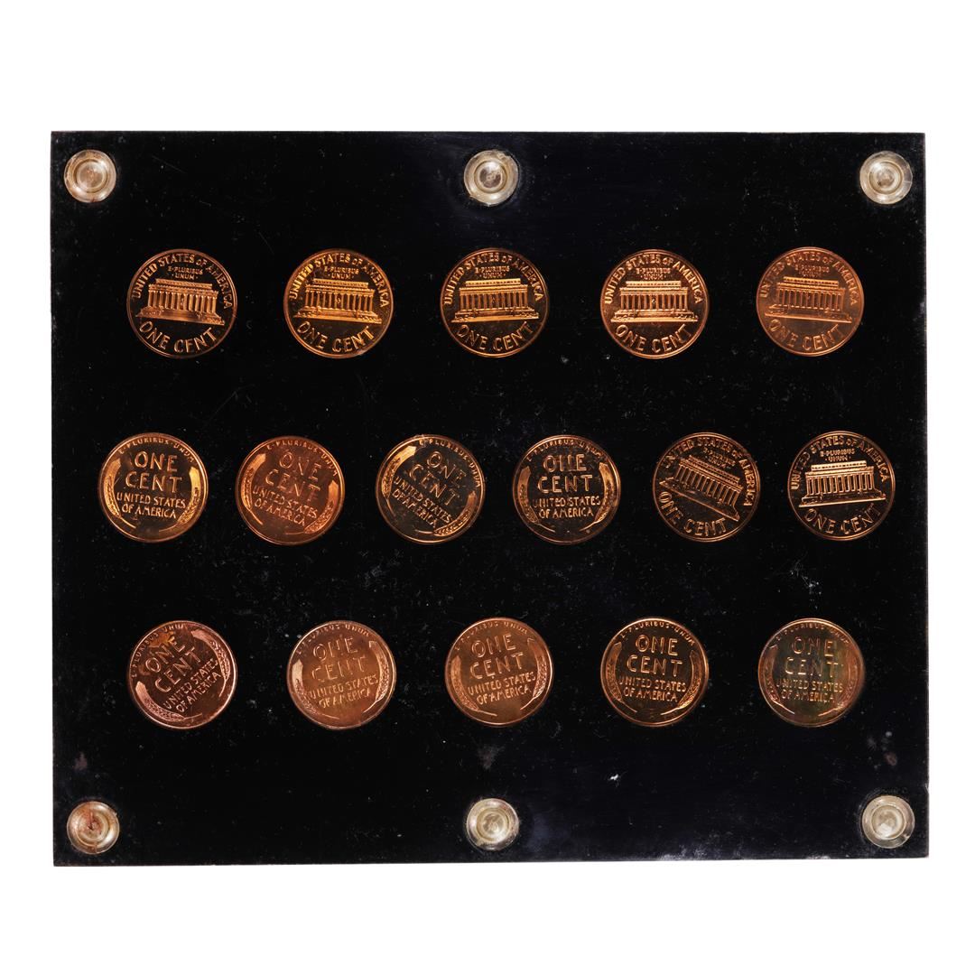 One Set of 1950-1964 Gem Proof Lincoln Memorial Wheat Cent Coins.