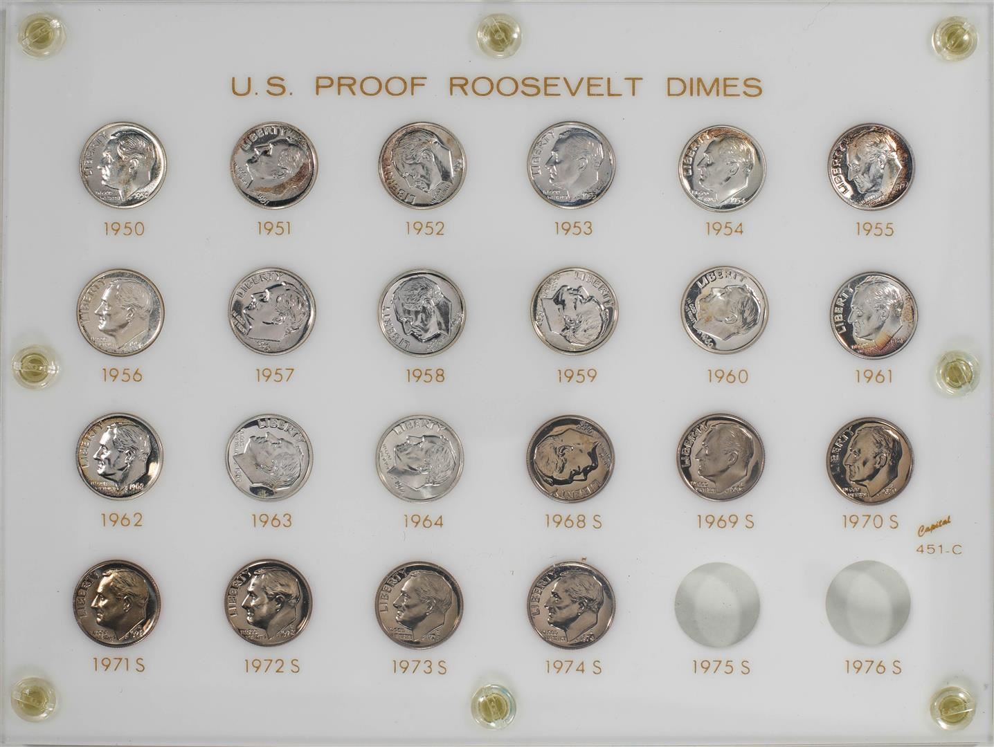 Set of 1950 - 1974 Roosevelt Dime (22) Coin Set in Capital Plastics Holder
