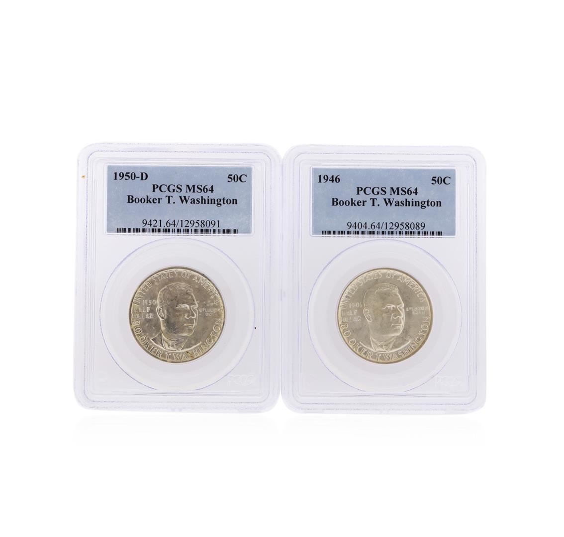 One Set of 1950-D & 1946 Booker T. Washington Commemorative Half Dollar Coins PCGS MS64. PCGS Graded.