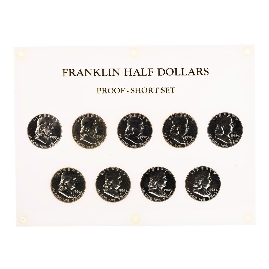 One Set of 1955-1963 Proof Franklin Half Dollar Coins.