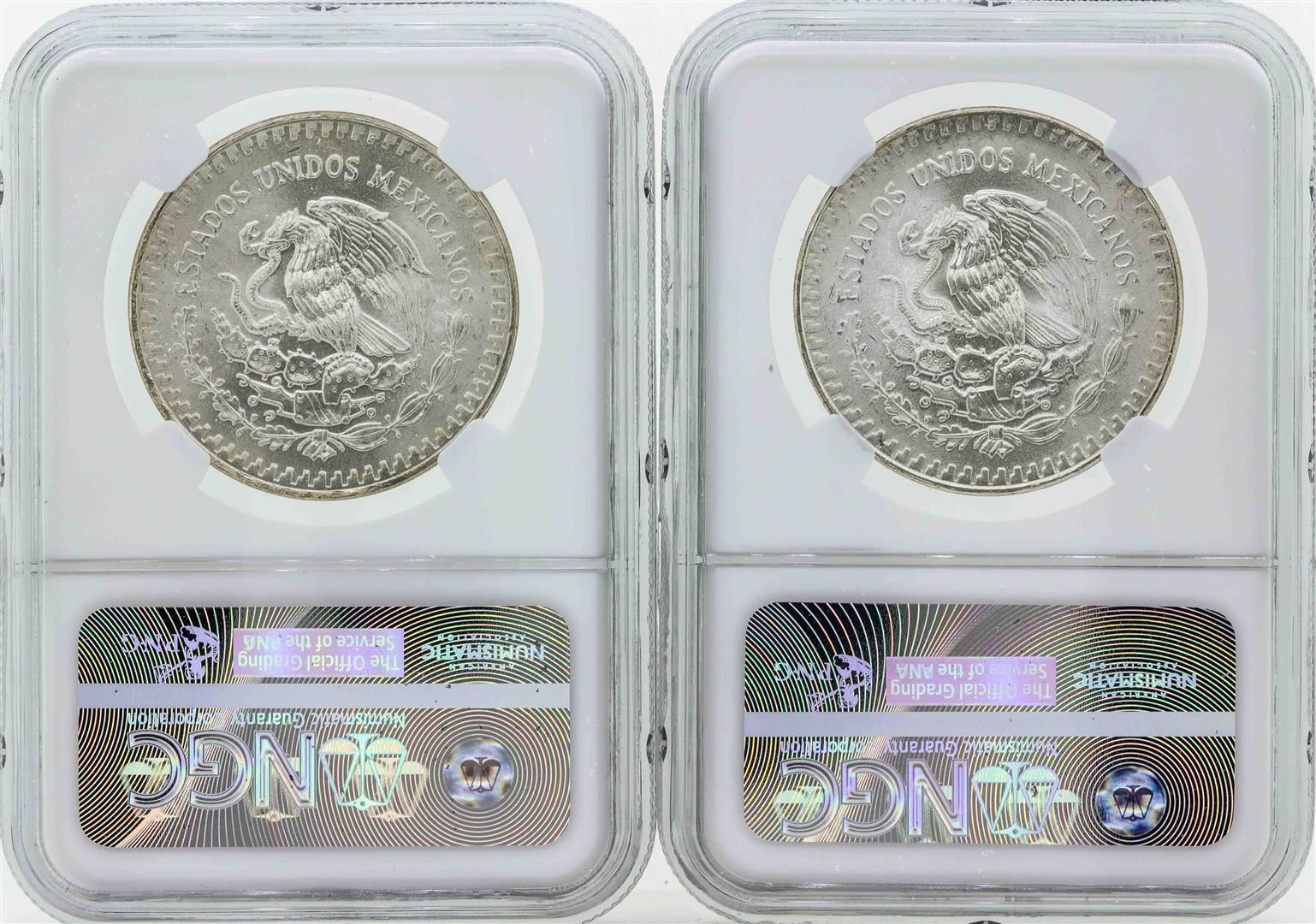 One Set of 1983MO-1984MO Mexico 1 Onza Silver Libertad Coins NGC MS66. NGC Certified.