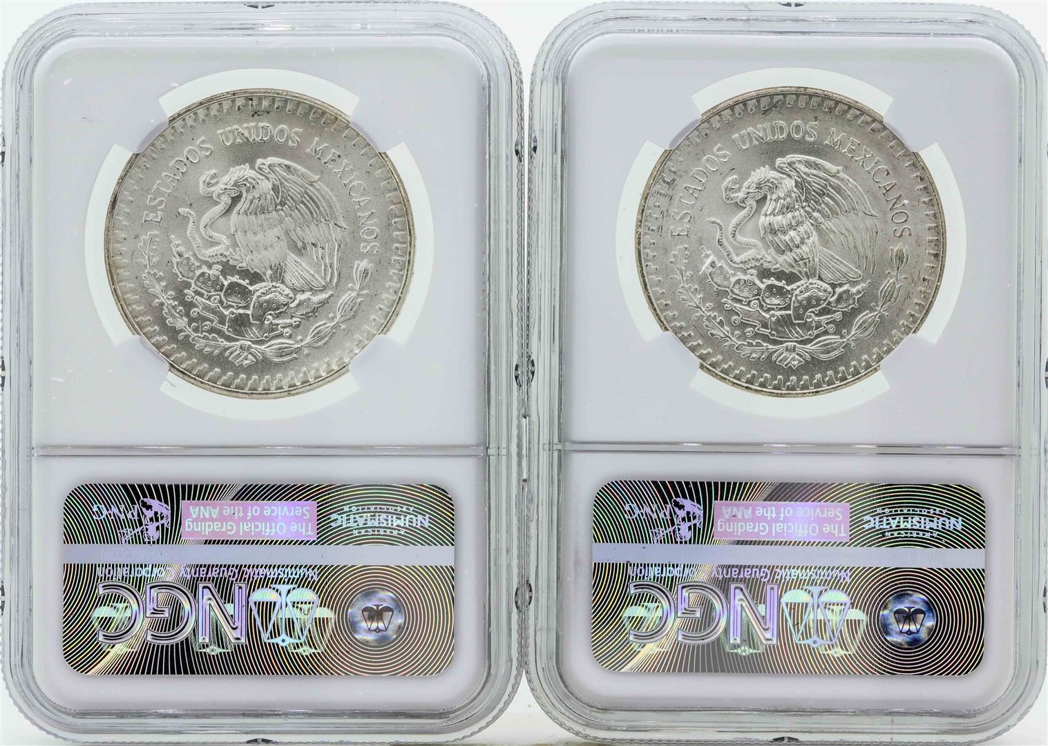 One Set of 1983MO-1984MO Mexico 1 Onza Silver Libertad Coins NGC MS66. NGC Certified.