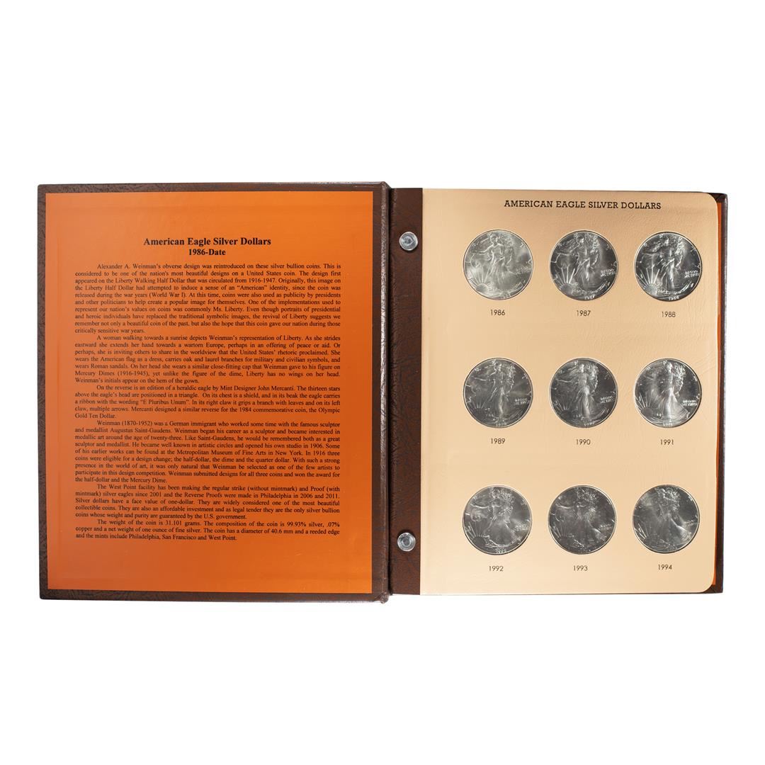 One Set of 1986-2019 $1 American Silver Eagle Coins in Dansco Book.