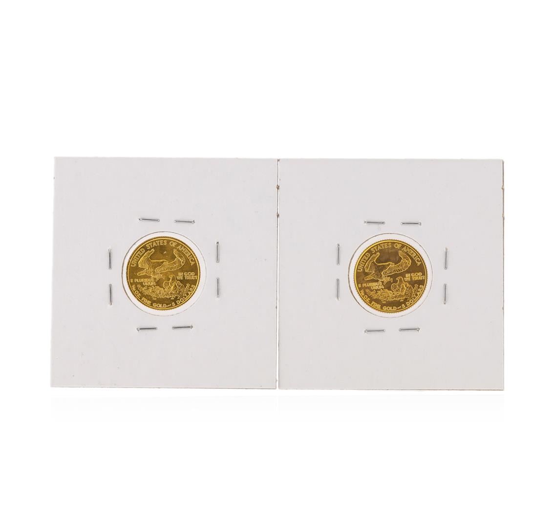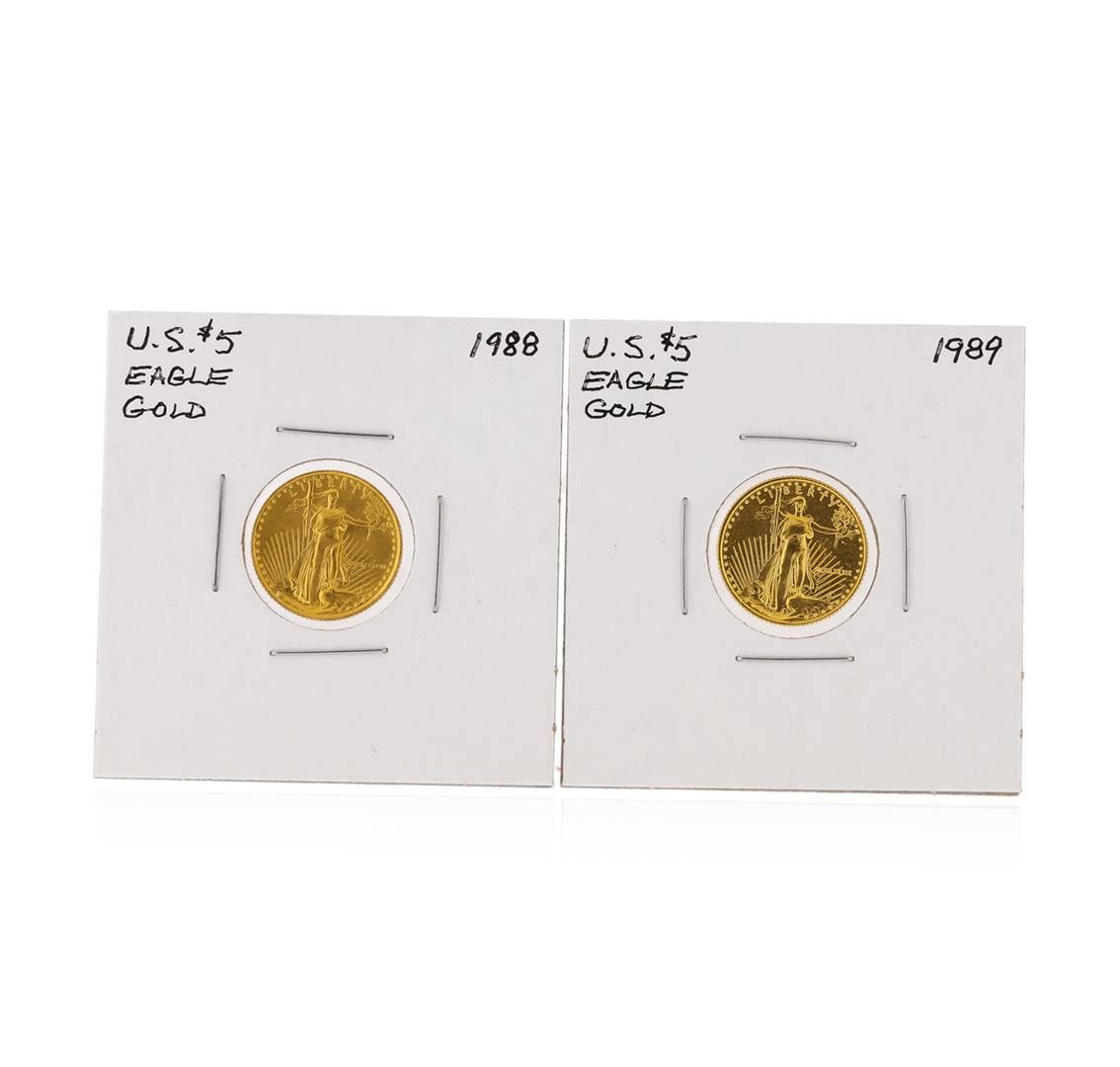 One Set of 1988 & 1989 $5 American Gold Eagle Coins.