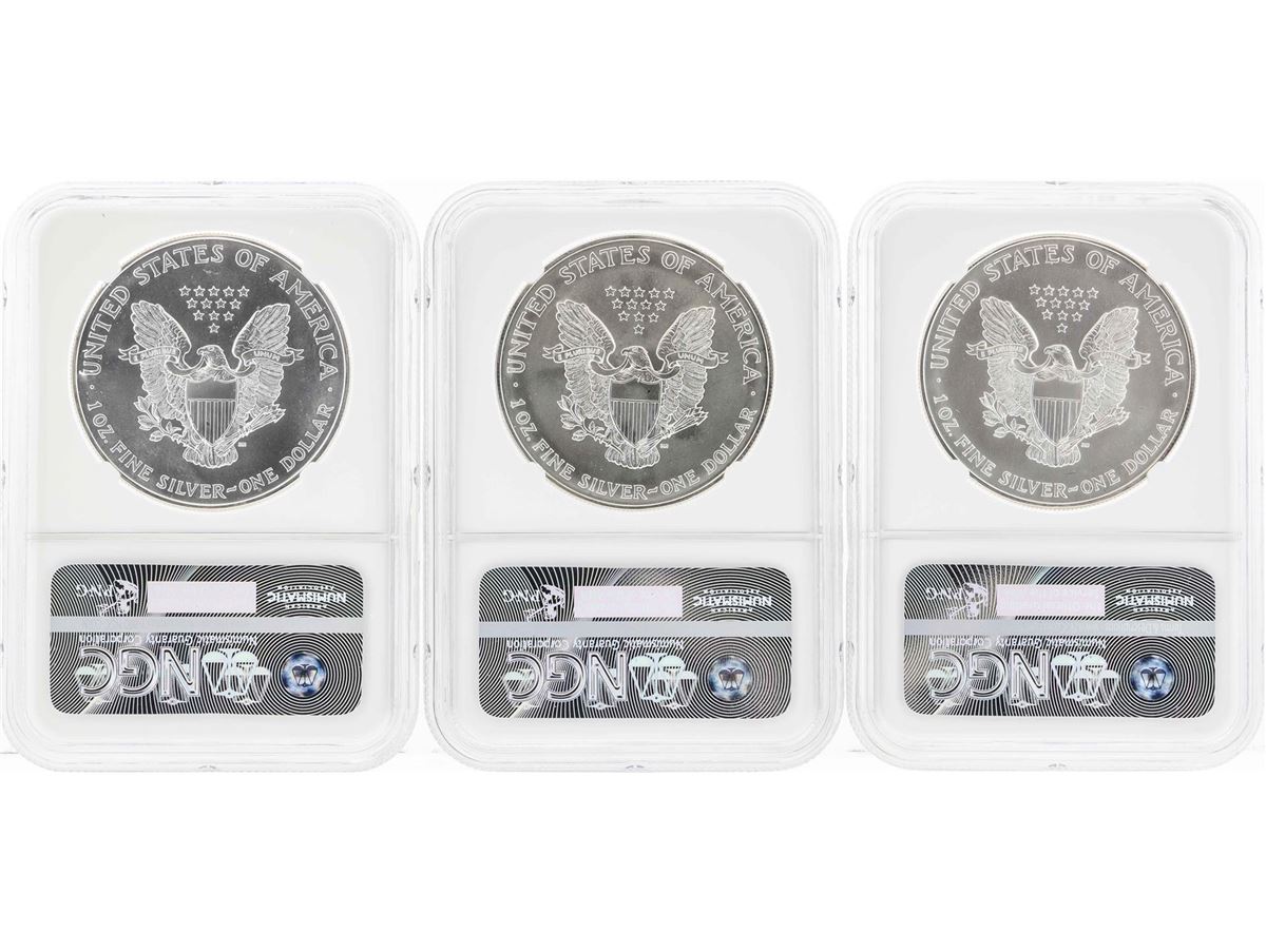 One Set of 1995-1997 $1 American Silver Eagle Coins NGC MS69. NGC Certified.