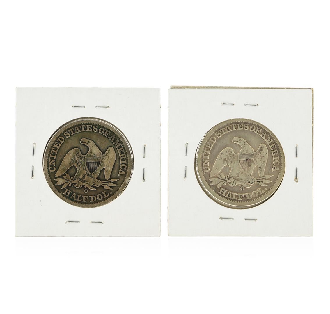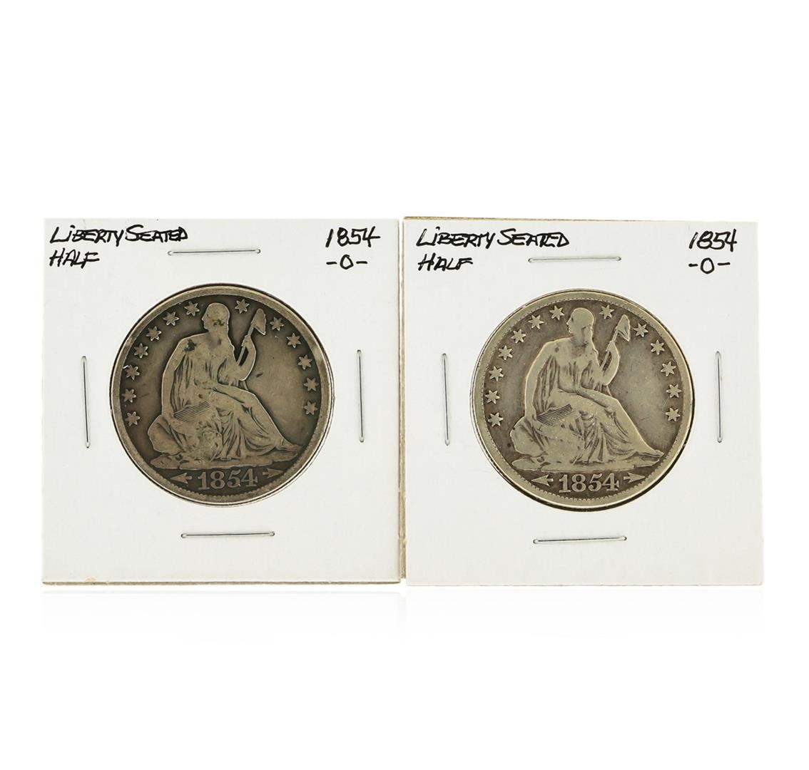 One Set of (2) 1854-O Silver Liberty Seated Half Dollar Coins.