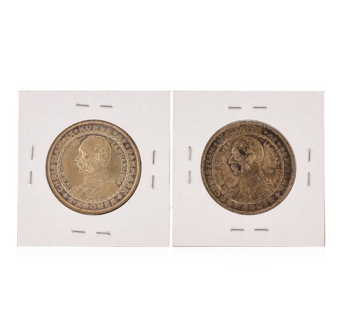 One Set of (2) 1906 VBP 2 Kroner Denmark Silver Coins.