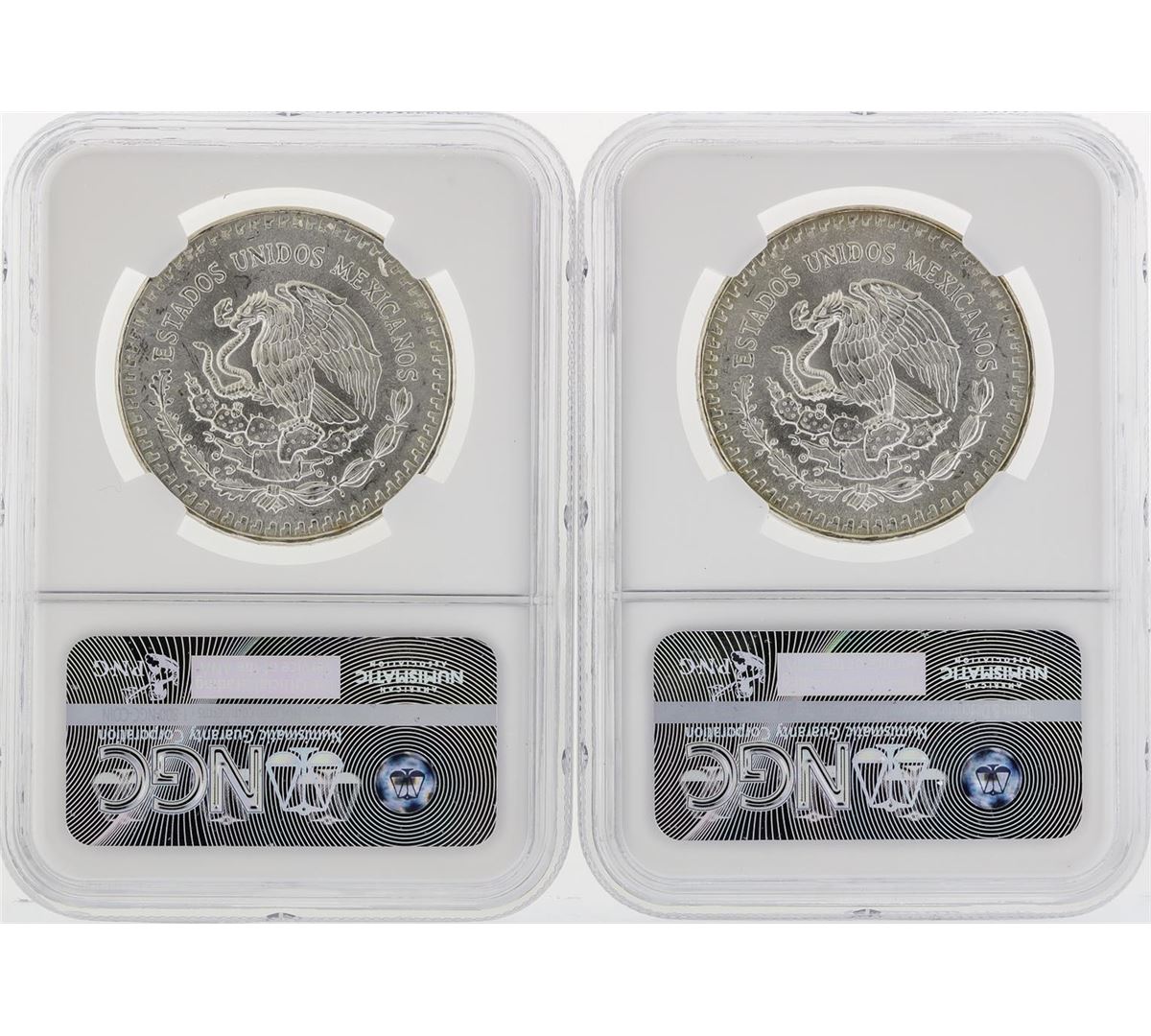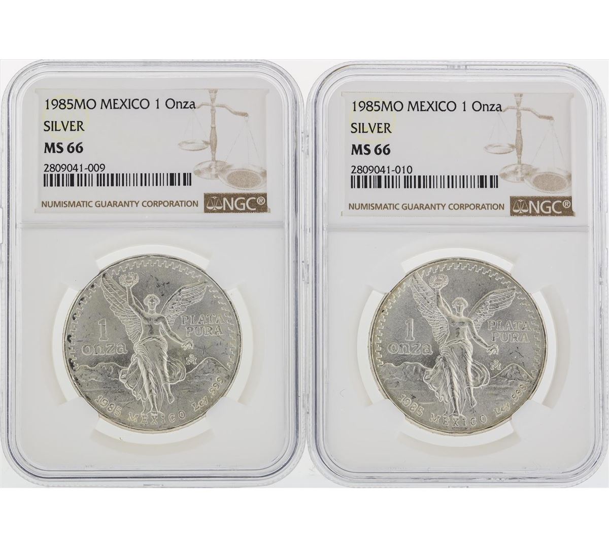 One Set of (2) 1985MO Mexico $1 Silver Coin NGC MS66. NGC Certified.