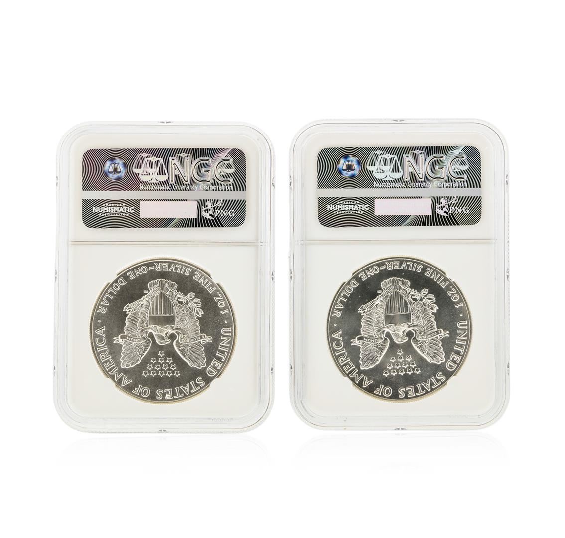 One Set of (2) 1986-1987 $1 Silver Eagle Coins NGC Graded MS69. NGC Certified.
