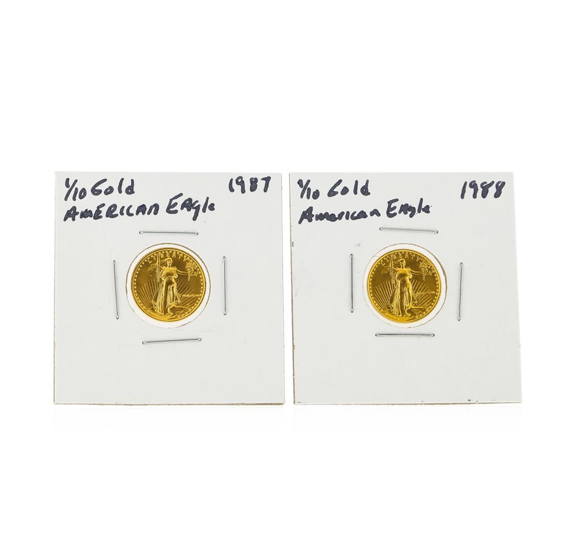 One Set of (2) 1997-1988 $5 1/10oz American Gold Eagle Coins.