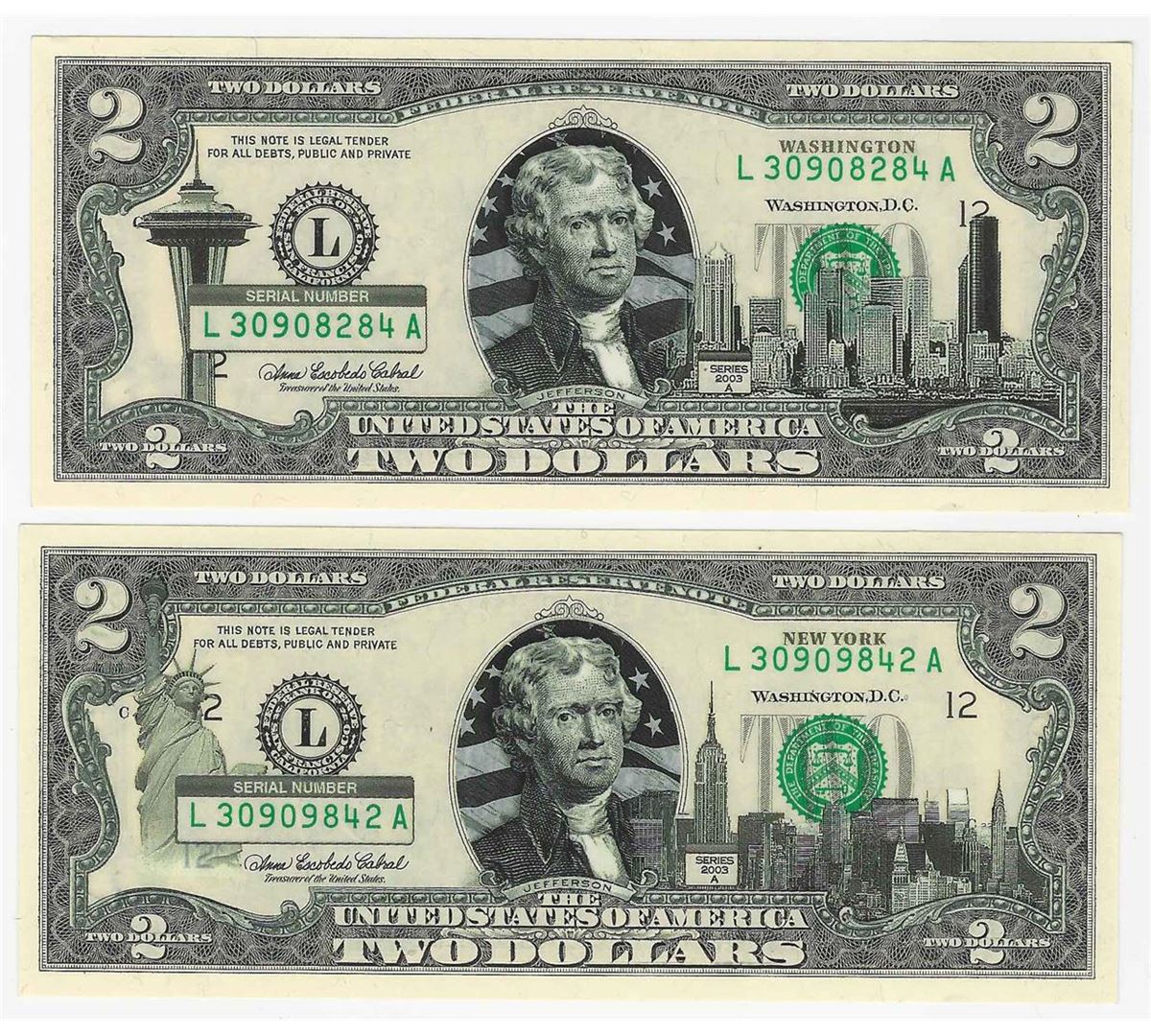 One Set of (2) 2003A $2 New York Federal Reserve Notes.