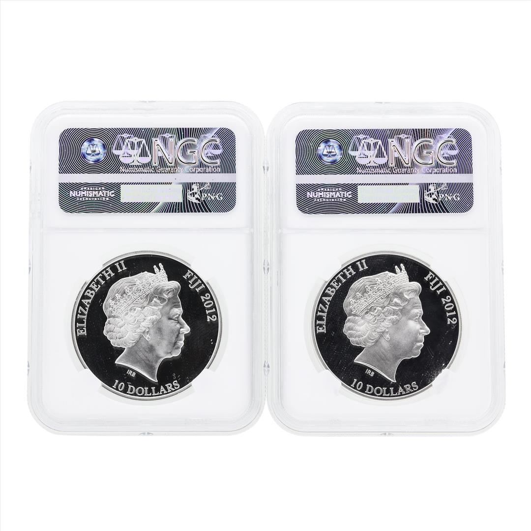 Set of (2) 2012 Gilt Fiji $10 Silver Coins NGC PF70 Ultra Cameo